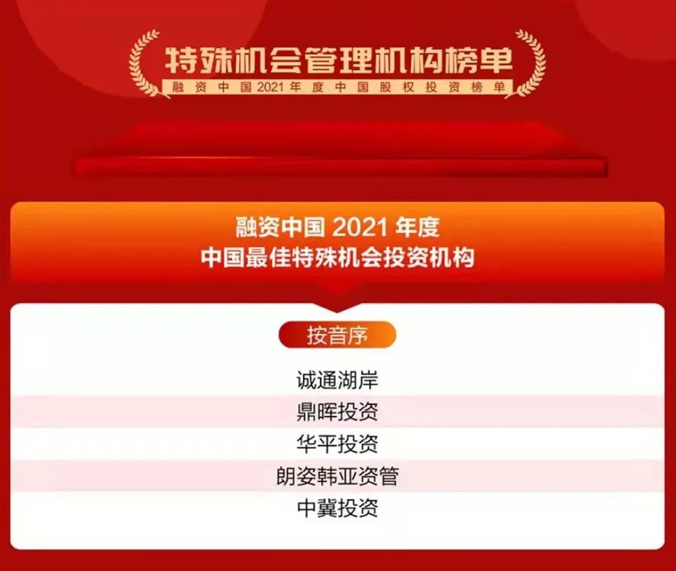 誠通湖岸入選“融資中國2021年度中國最佳特殊機會投資機構”